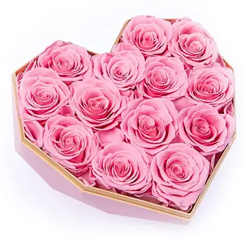 Hflora Valentine's Day Gifts Wedding Decorative Flowers Bouquet Box Preserved Rose in Diamond Heart Shaped Gift Box